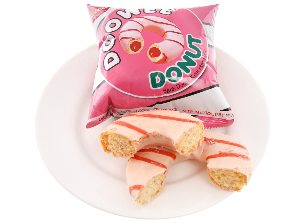 Bánh donut thơm ngon, hình tròn rỗng bên trong mềm mịn cùng lớp dâu nhân mứt dâu béo ngọt kích thích vị giác. Bánh Rebisco Doowee Donut 300g (30g x 10 cái) chất lượng, thích hợp dùng để ăn vặt, đem theo những buồi pinic, dã ngoại,… từ thương hiệu Doowee Donut