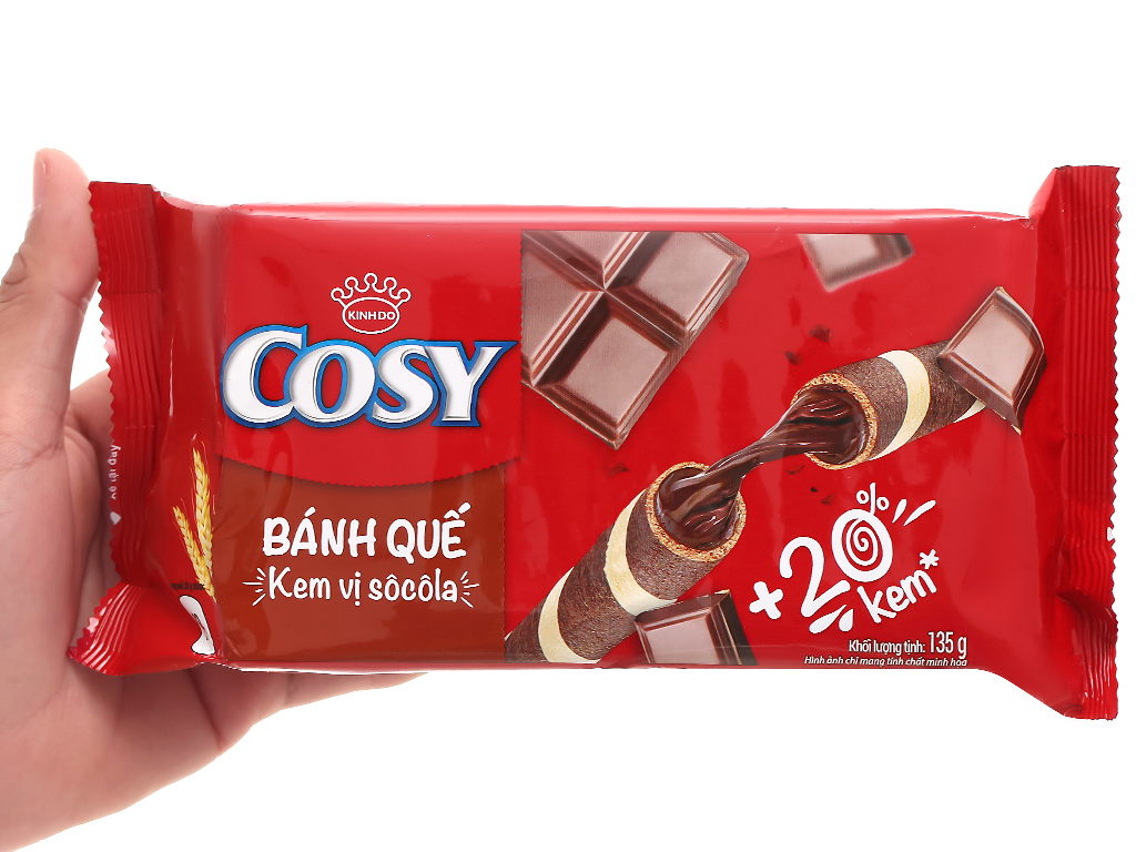 Bánh thơm ngon, giòn tan đậm vị socola. Bánh quế vị kem sô cô la Cosy gói 132g là sản phẩm chất lượng đến từ Cosy, hương vị thơm ngon, kích thích vị giác mà không ngán khi ăn. Bánh quế có thể sử dụng để ăn vặt hoặc trang trí những món ngọt tùy thích như kem, puiding,…