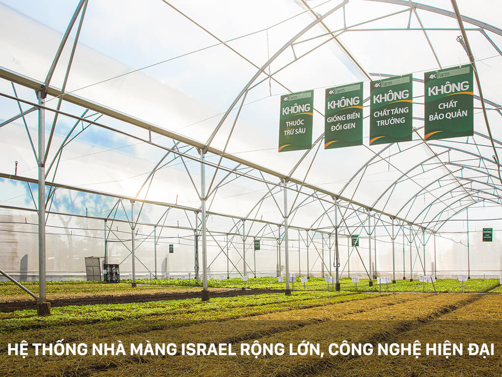 Rau an toàn 4KFarm được trồng trong nhà lưới Israel chống côn trùng xâm nhập, giám sát bằng công nghệ 4.0.